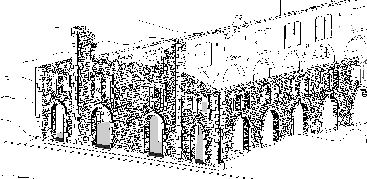 Geometrie irregolari: Trattandosi di un rudere, non esistono angoli retti. Documentare il "fuori piombo" delle pareti è stato fondamentale per progettare l'innesto delle nuove strutture.